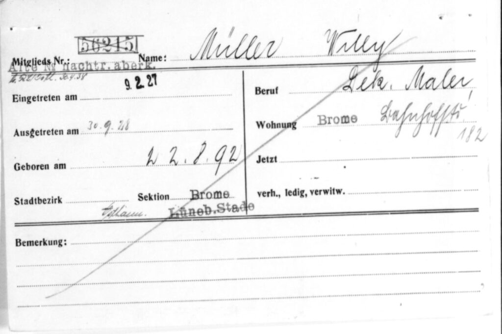 Zum einen gab es die sogenannten „Märzgefallenen“ – Opportunisten, die nach dem Wahlsieg im März 1933 auf den fahrenden Zug aufsprangen. Zum anderen – und das war der Hauptgrund – wurde am 22. September 1933 der Tannenbergbund von den Nationalsozialisten verboten. Die etwa 80 Mitglieder aus Brome traten daraufhin geschlossen in die NSDAP ein, wie es in dem NSDAP-Heft „Wir waren dabei“ ganz propagandistisch heißt. Doch mit Sicherheit sind nicht alle der NSDAP beigetreten: Der Führer des Tannenbergbundes, Willy Müller, war zwar am 9. Februar 1927 in die NSDAP eingetreten und ist dann nach dem Ludendorffbesuch Ende September 1928 ausgetreten. Ein Wiedereintritt ist nicht nachweisbar!