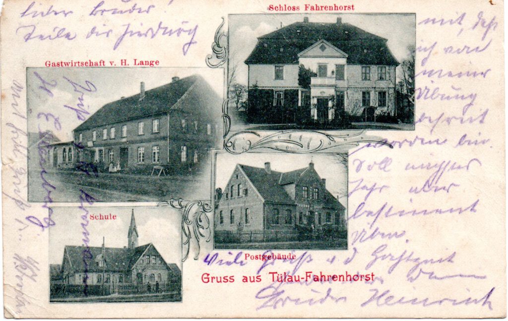 Zu erwähnen ist noch, dass es sich um einen Soldatenbrief handelte, der nicht frankiert werden musste. Der Poststempel von Tülau-Fahrenhorst zeigt das Datum 17.6.08 3-4N. – die Postkarte wurde demnach nachmittags zwischen 15 und 16 Uhr gestempelt und abgeschickt.
